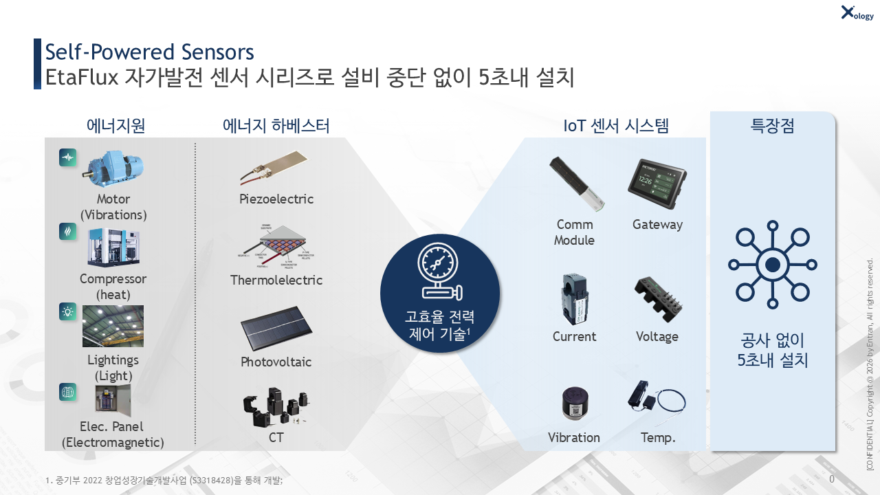 Xology는 별도의 외부 전원 없이도 동작 가능한 무선 센싱 기술을 통해, 공장과 건물 설비의 에너지 데이터를 실시간으로 수집합니다.